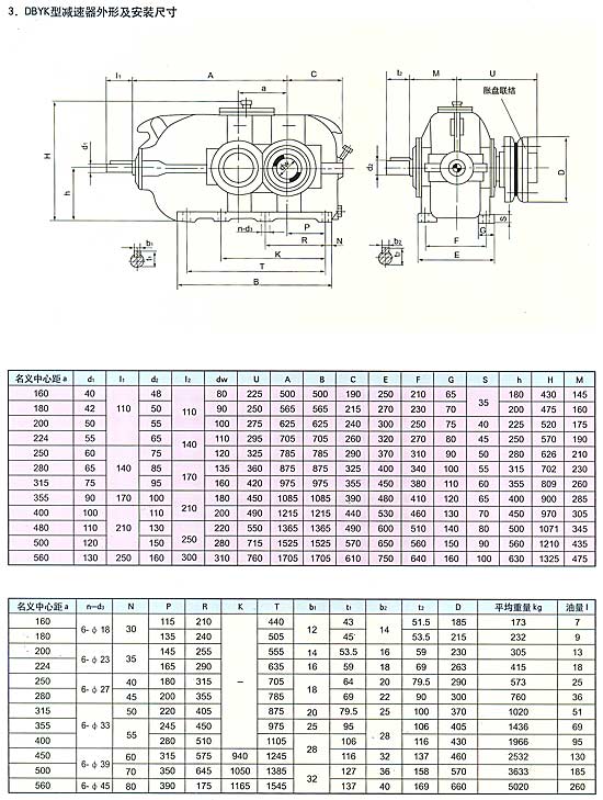 D一帶式輸送機(jī)類組代號(hào),B一二級(jí)傳動(dòng),c一三級(jí)傳動(dòng),Y一硬齒面齒輪,z一中硬齒面齒輪,K一輸出軸為空心軸形式。